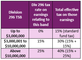 Division 296 tax is levied on the individual, not a superannuation fund. However, the tax can be paid either by the individual or they can elect for the amount to be deducted from their nominated superannuation interest.
